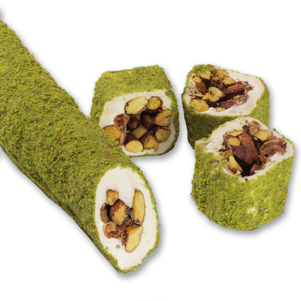 Pistachio In & Out Turkish Delights are a delightful fusion of traditional Turkish delight with a twist. These treats feature a smooth, chewy outer layer filled with the rich, nutty goodness of whole pistachios inside. The combination of soft, sweet delight with crunchy pistachios offers a satisfying contrast of textures and flavors. Perfect for those who enjoy the authentic taste of Turkish delight with an added nutty crunch, making it a truly indulgent snack.