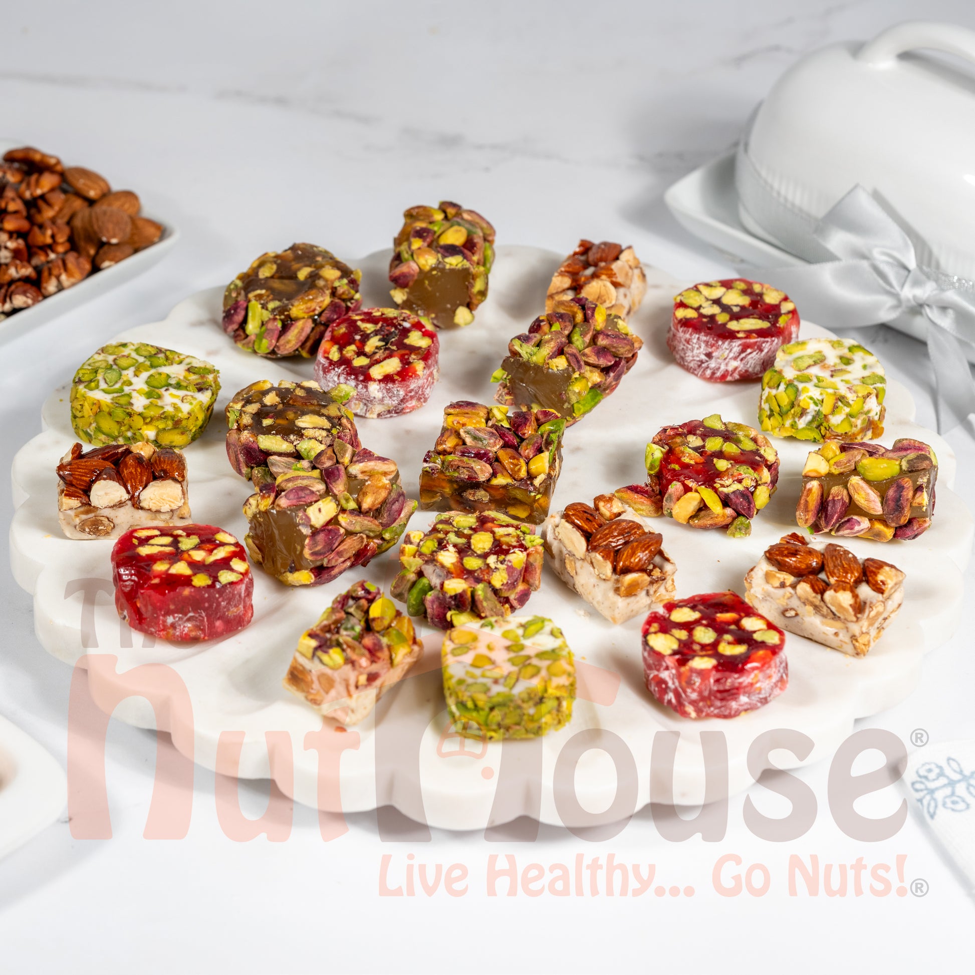 The chewy nougat provides depth and nuttiness, while the soft raha adds a smooth and lightly sweet contrast. Mixed Aleppo Deluxe Raha & Noga is ideal for gifting, hosting, or serving as part of a dessert table. Its balanced sweetness and varied textures make it appealing for a wide range of tastes.