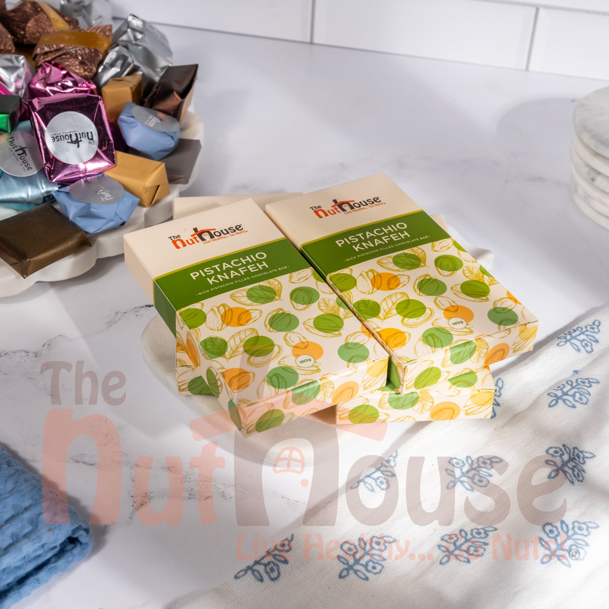 Pistachio Knafeh Dubai Chocolate Bar combines smooth chocolate with the rich flavor of pistachio and the delicate texture inspired by knafeh. This layered bar offers contrast between creamy chocolate and the nutty depth of pistachios.